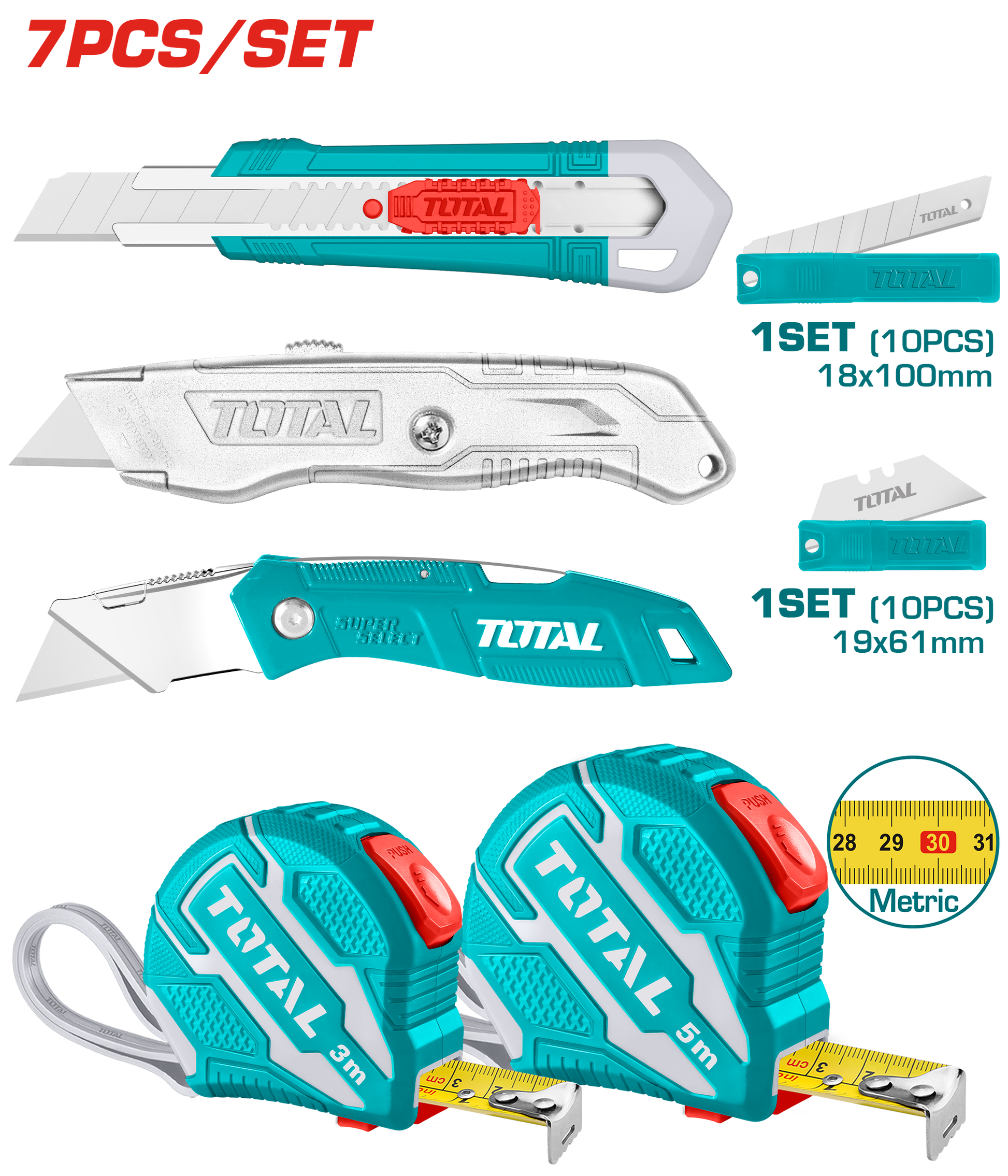 7 PCS MEASURING TAPE AND UTILITY KIFE SET