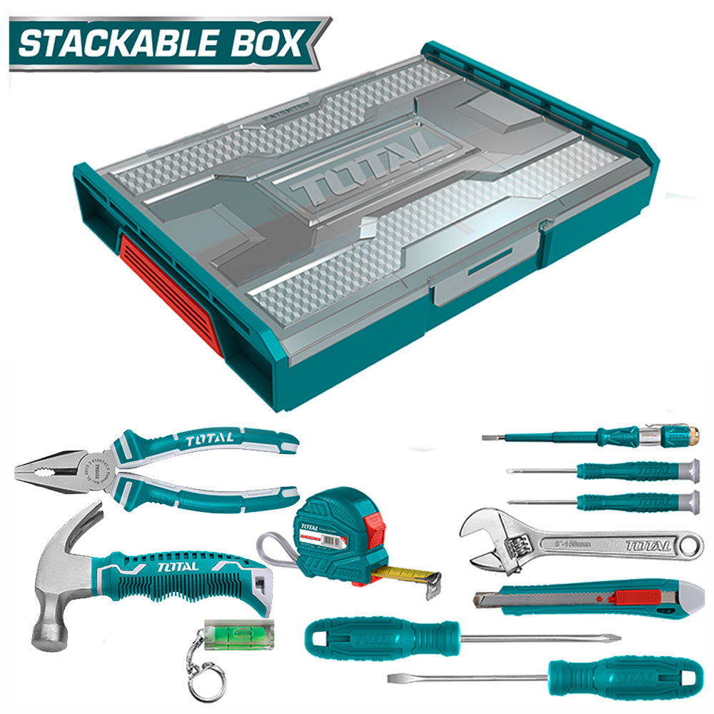 11 Pcs Tools Set,Include:,1 Pcs Mini Claw Hammer 1 Pcs 7" Combination Pliers 1 Pcs 6" Adjustable Wrench 1 Pcs Test Pencil(Test voltage:100-500VAC) 1 Pcs 3M Steel measuring tape 1 Pcs Snap-off blade knife 1 Pcs SL5.5x100 Screwdriver 1 Pcs PH1x100 Screwdriver 1 Pcs SL2.0*50mm Precision Screwdriver,1 Pcs PH000*50mm Precision Screwdriver 1 Pcs spirit bubble