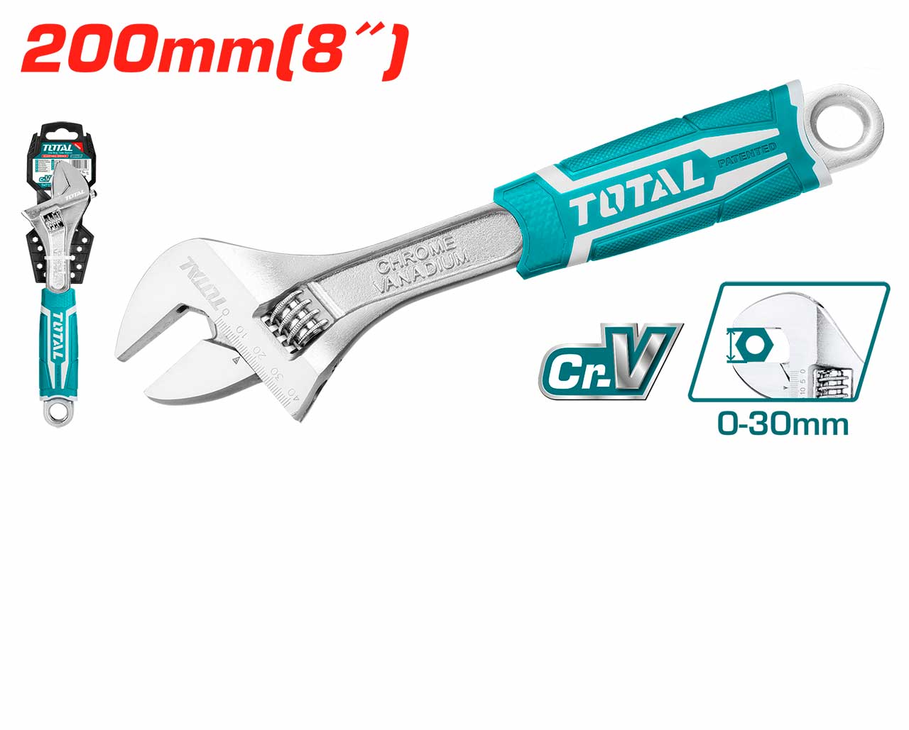 TOTAL 200MM/8" ADJUSTABLE WRENCH RUBBER HANDLE