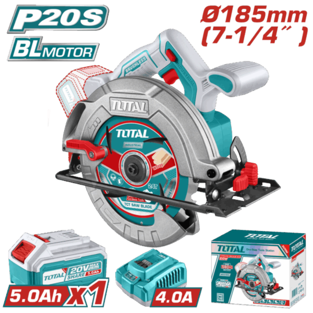 TOTAL 20V Circular Saw 185mm 1X5AH+Charger+Acc Kit – TSLI18513