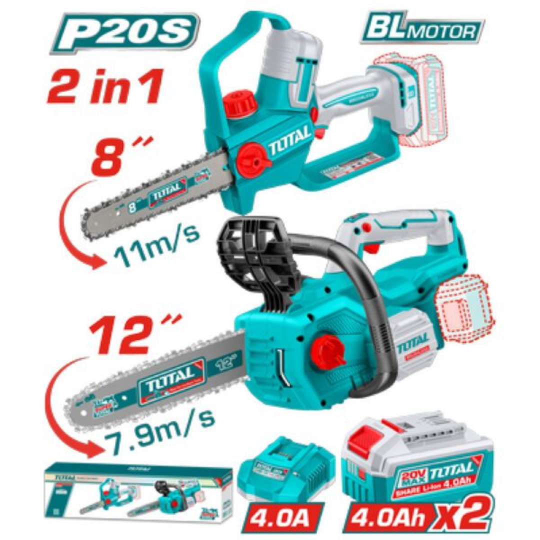 TOTAL 20V COMBO 2PC Pruner Saw 8″+ Chain Saw 12″ – TOSLI251085